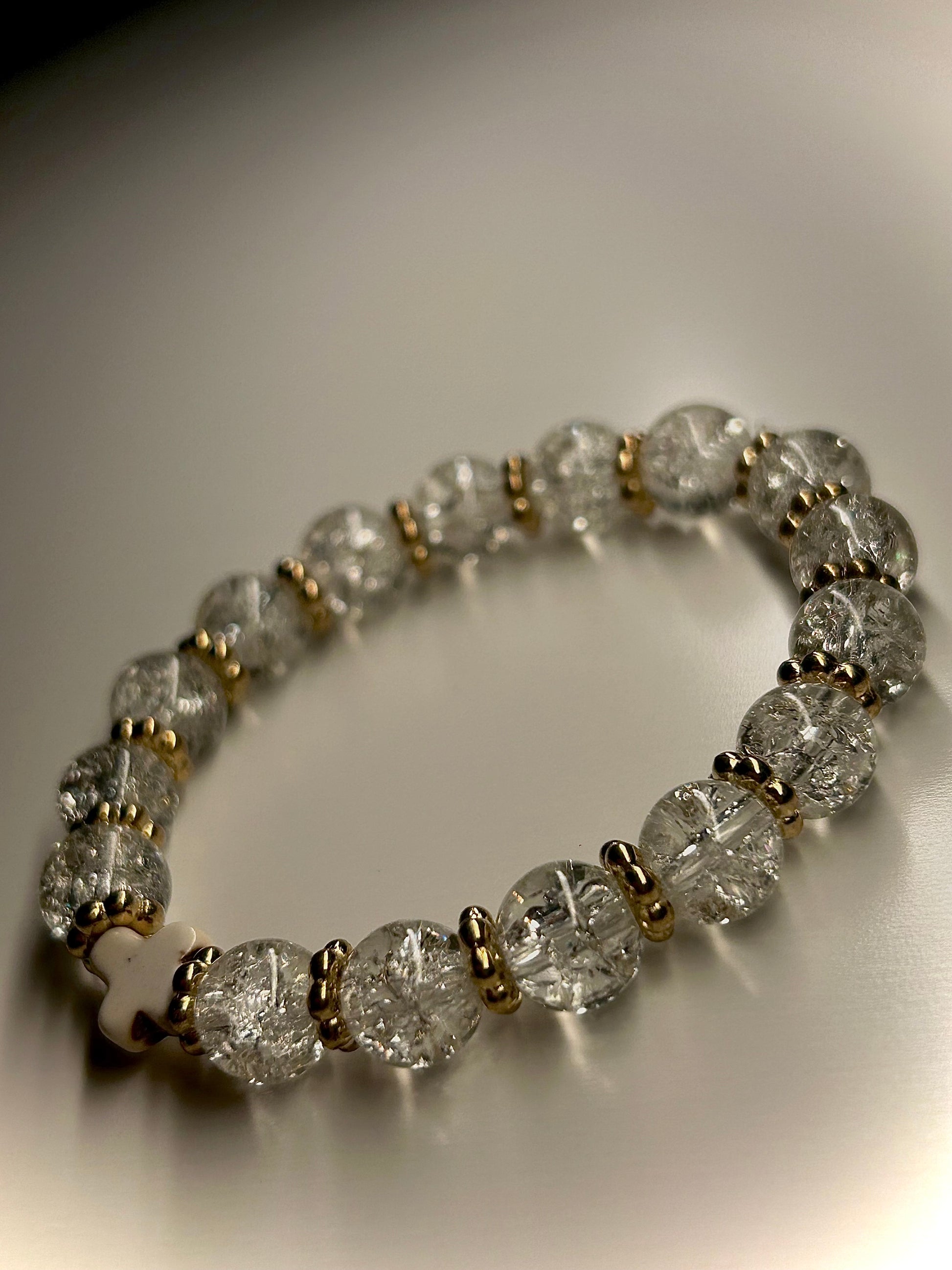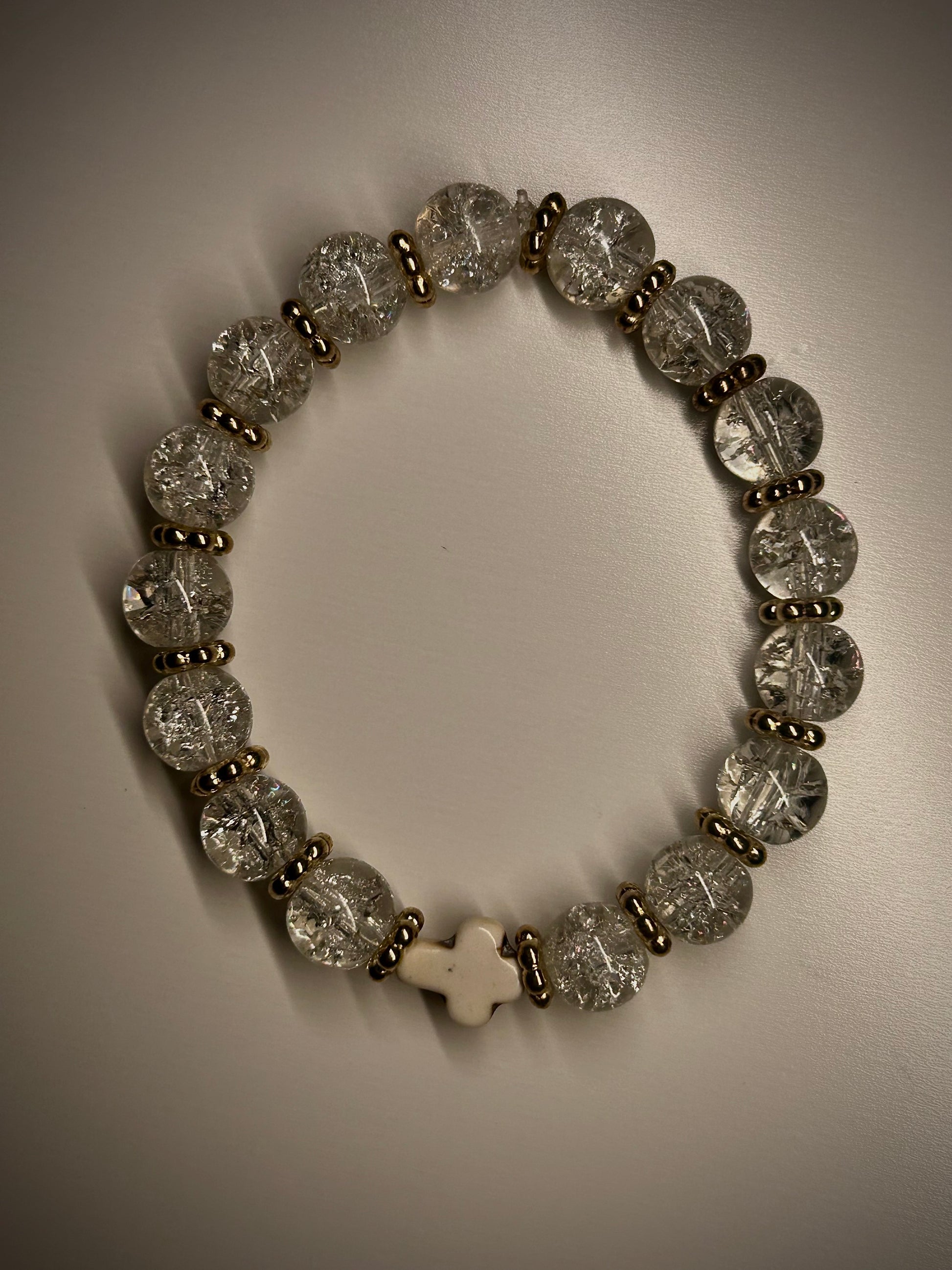 This gorgeous clear & gold cross bracelet is perfect for wearing to church and on the go!