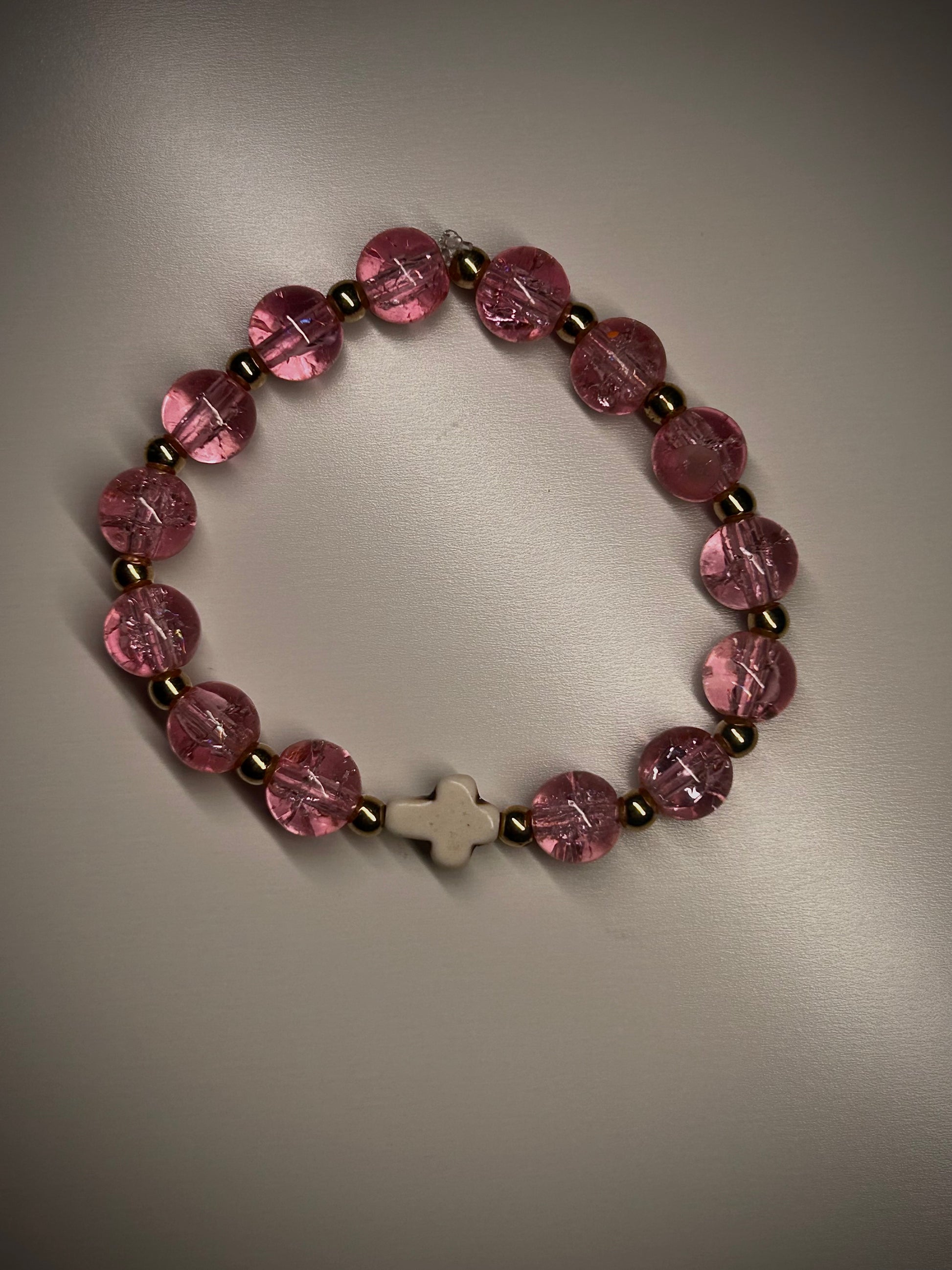 This gorgeous pink & gold cross bracelet is perfect for wearing to church and on the go!