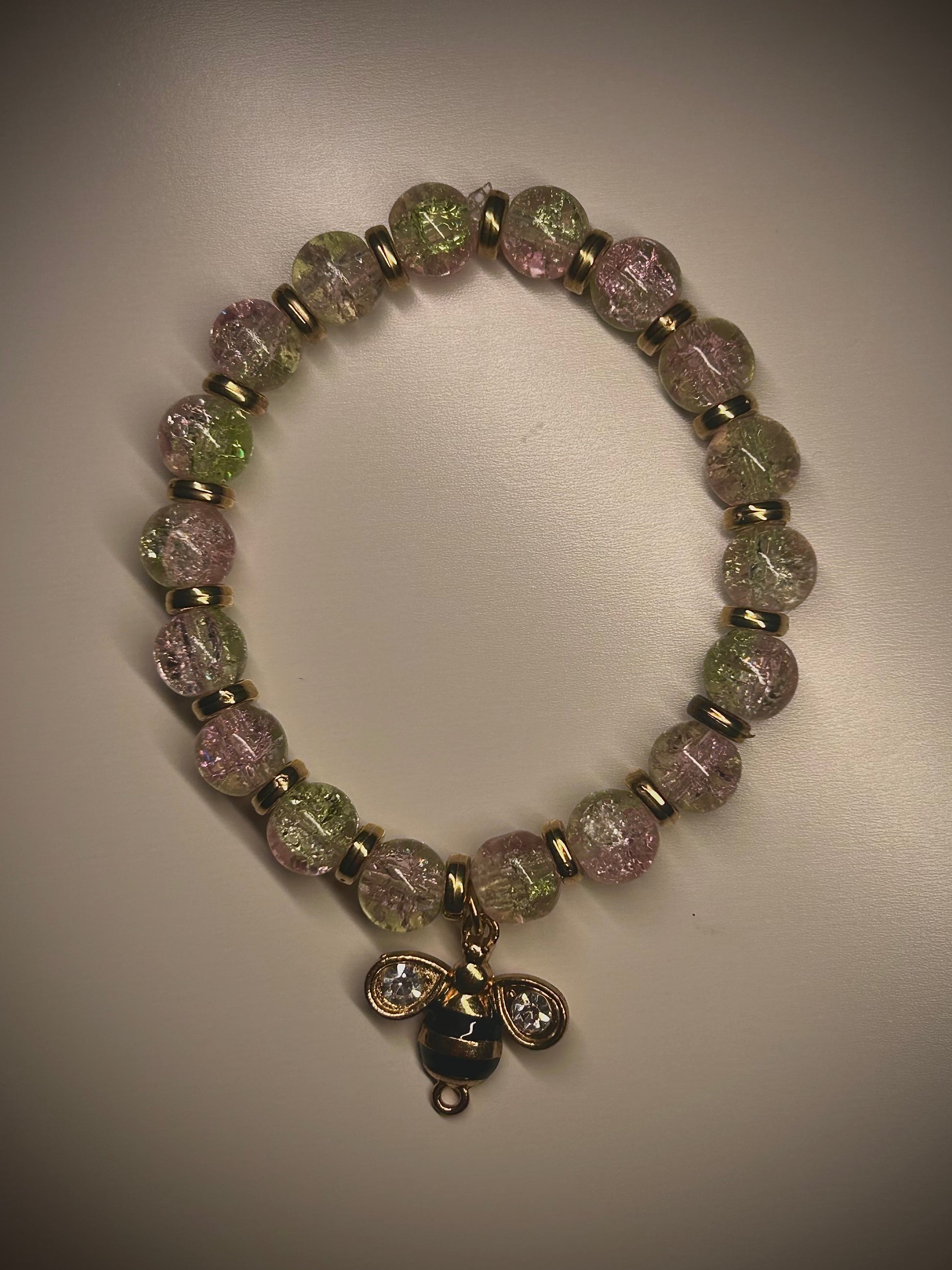 Make your wrist look better than ever with this pink & green bee bracelet!